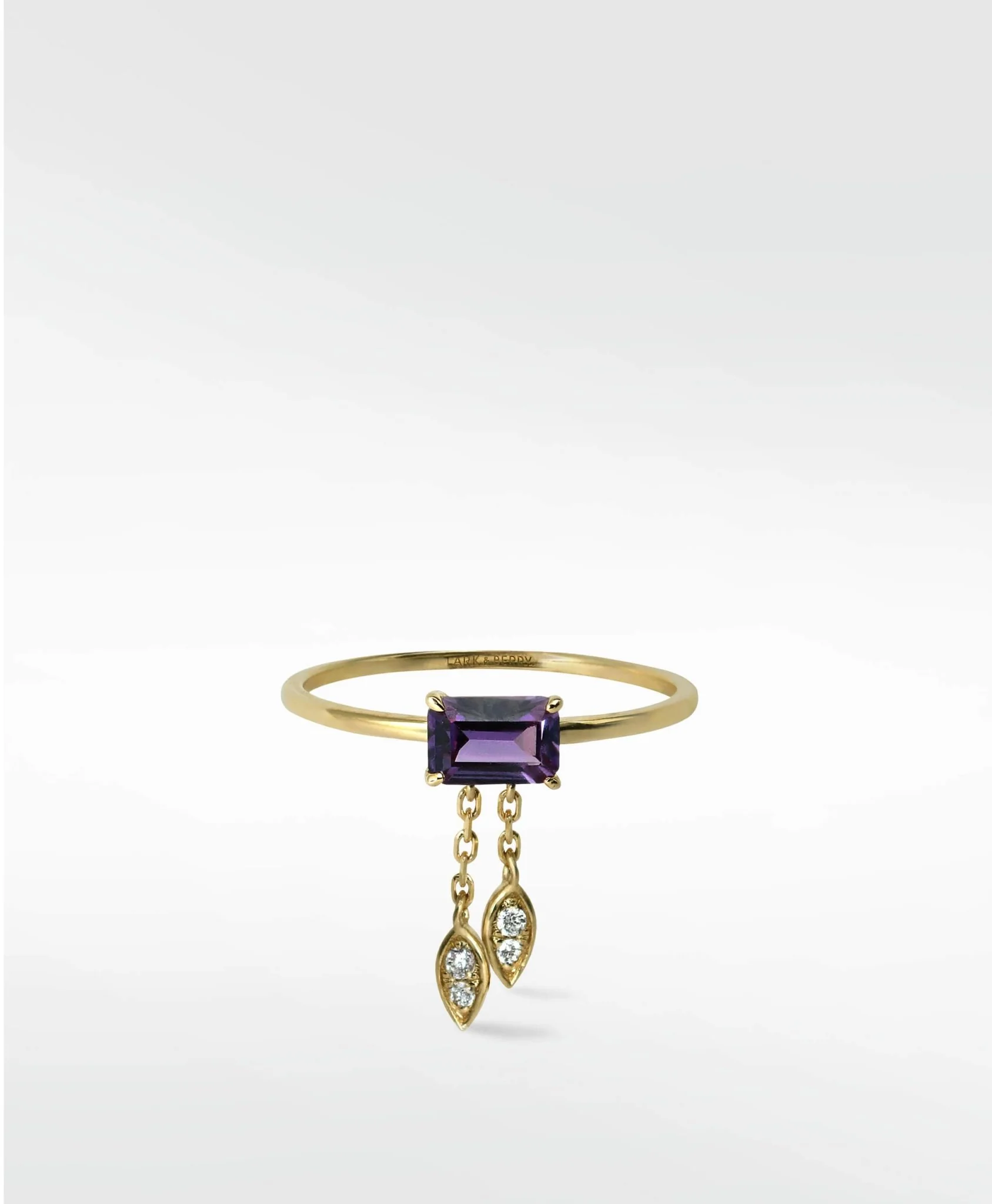 Immaculate cultured diamond leaves glisten and dance around your digits when you wear this beautiful Violet Sapphire Delicate Charm Ring; perfect elegance for any finger you choose.