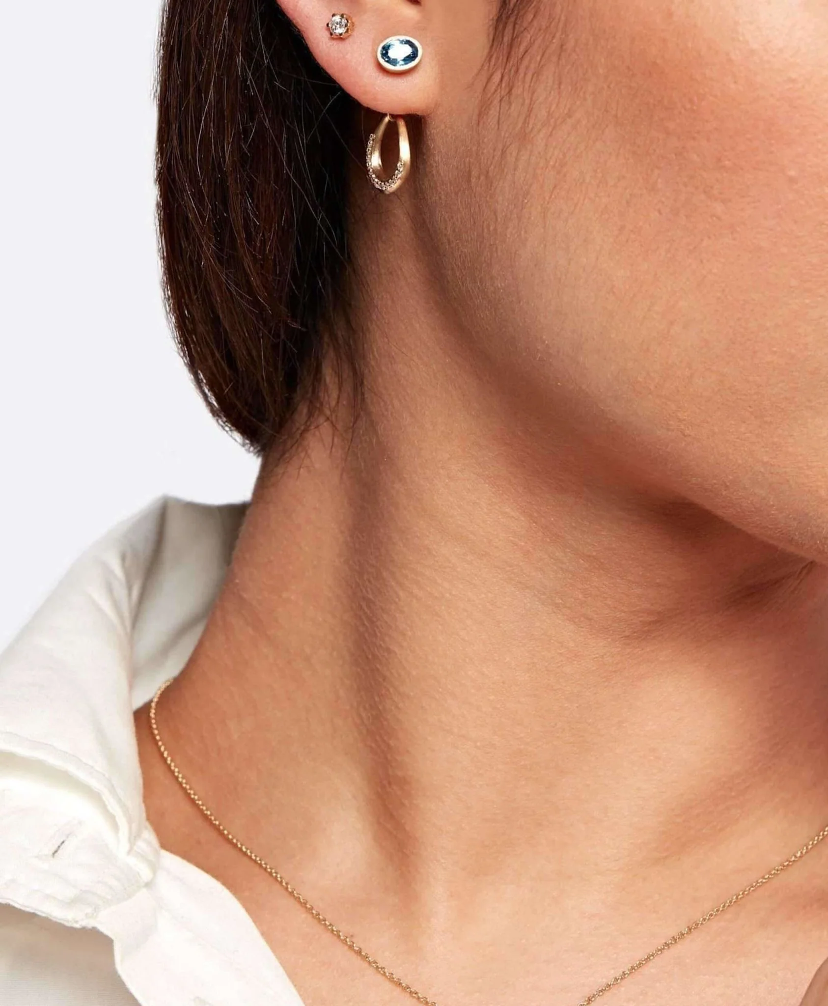Get clever with colour and effortlessly dress your ears with our gorgeous blue spinel studs. Delicately set with miniature pave diamonds, these can be easily dressed up with the matching Blue Dune Drop necklace for an instant style update.