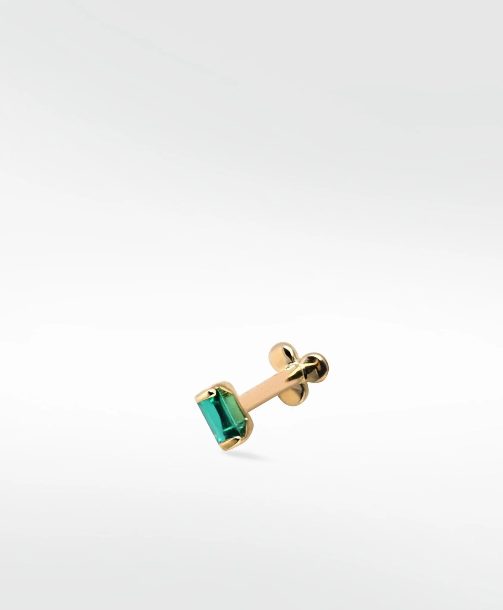 Line your ears with subtle baguettes of cultured white sapphires, set into 14k yellow gold. Featuring perfectly created sapphires, these Clean Baguette White Sapphire Labret Earring are ideal for your first piercing (or your fifth!)
