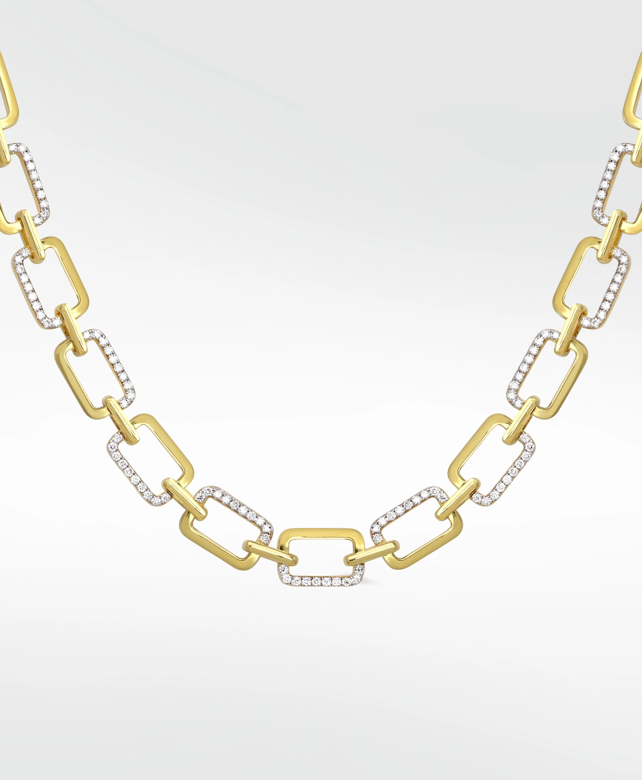 The world keeps turning and you'll definitely turn some heads in this Horizon Diamond and Spinel Statement Necklace. With Diamonds highlighted in white rhodium on one side, turn over to reveal the darker side of black spinel and black rhodium. Worn at a shorter length this is definitely a piece to be layered for the ultimate statement.