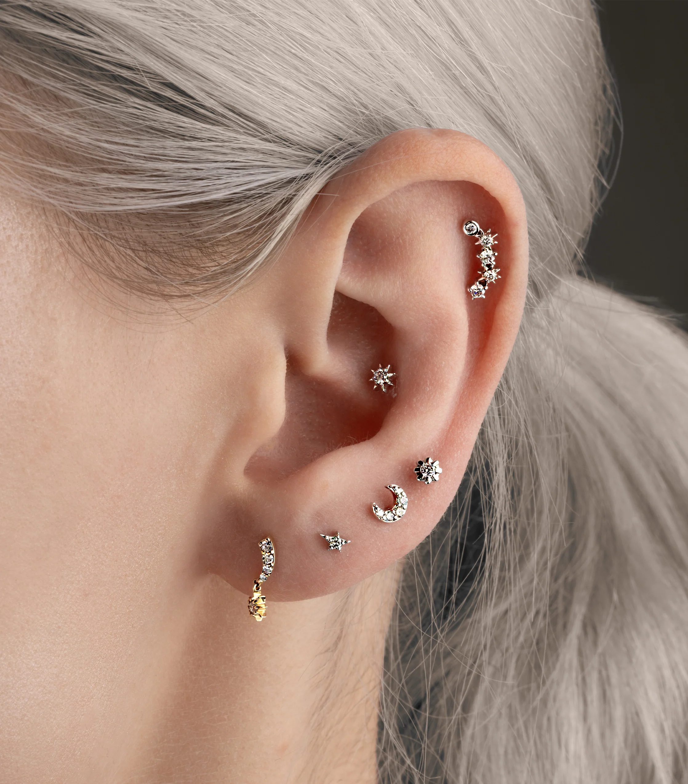 Be a star in your own universe, and glitter your ears with stars in the form of our Interstellar Starburst Diamond Labret. Why not get creative and turn your ears into an entire solar system, as our labrets are suitable for piercing with.