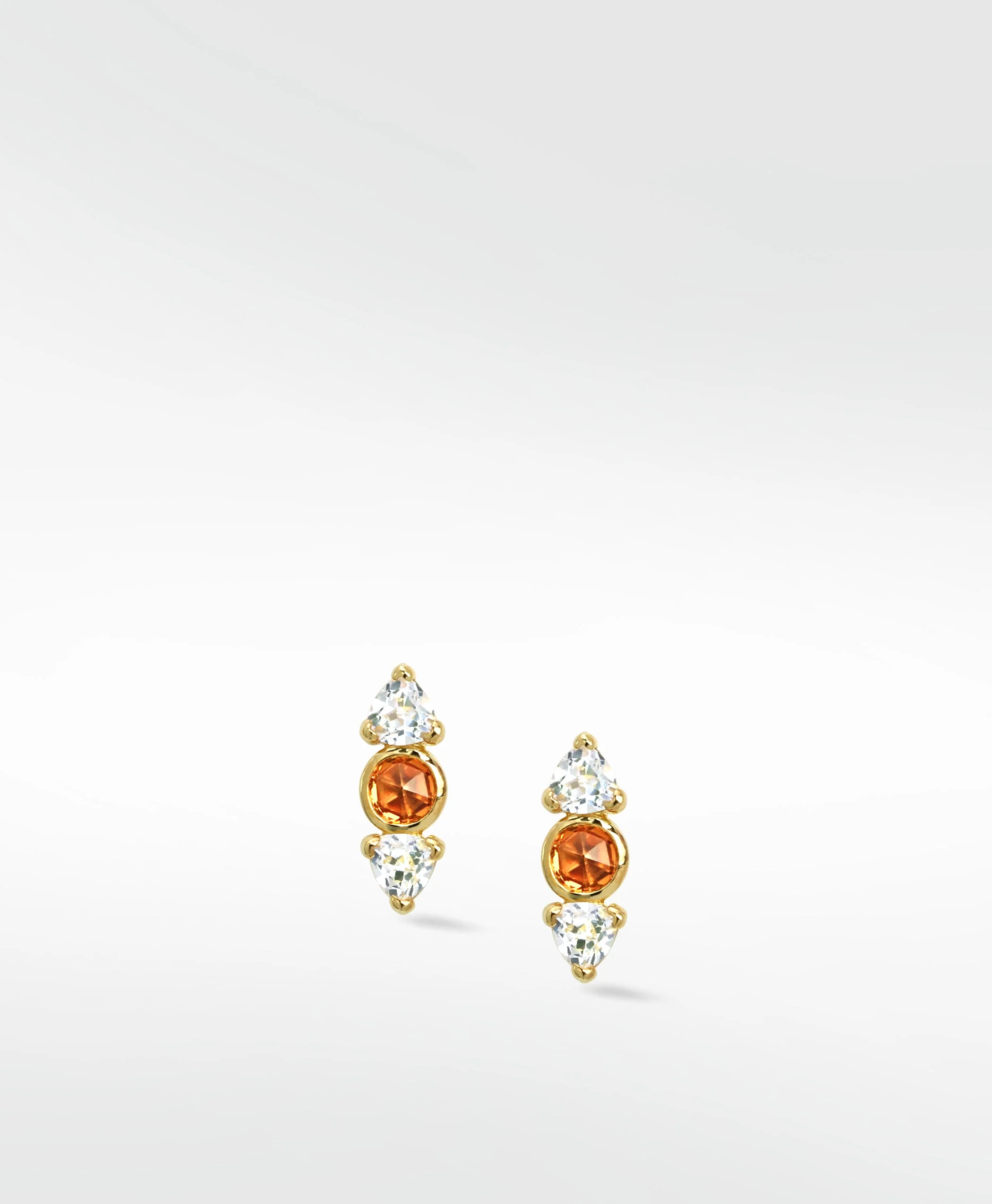 A double dose of white Cultured Sapphires here perfectly frame the beautiful burn of our orange Cultured Sapphire gemstones. Hope you mean to leave a long impression wearing these, because we can guarantee it will be a lasting one.