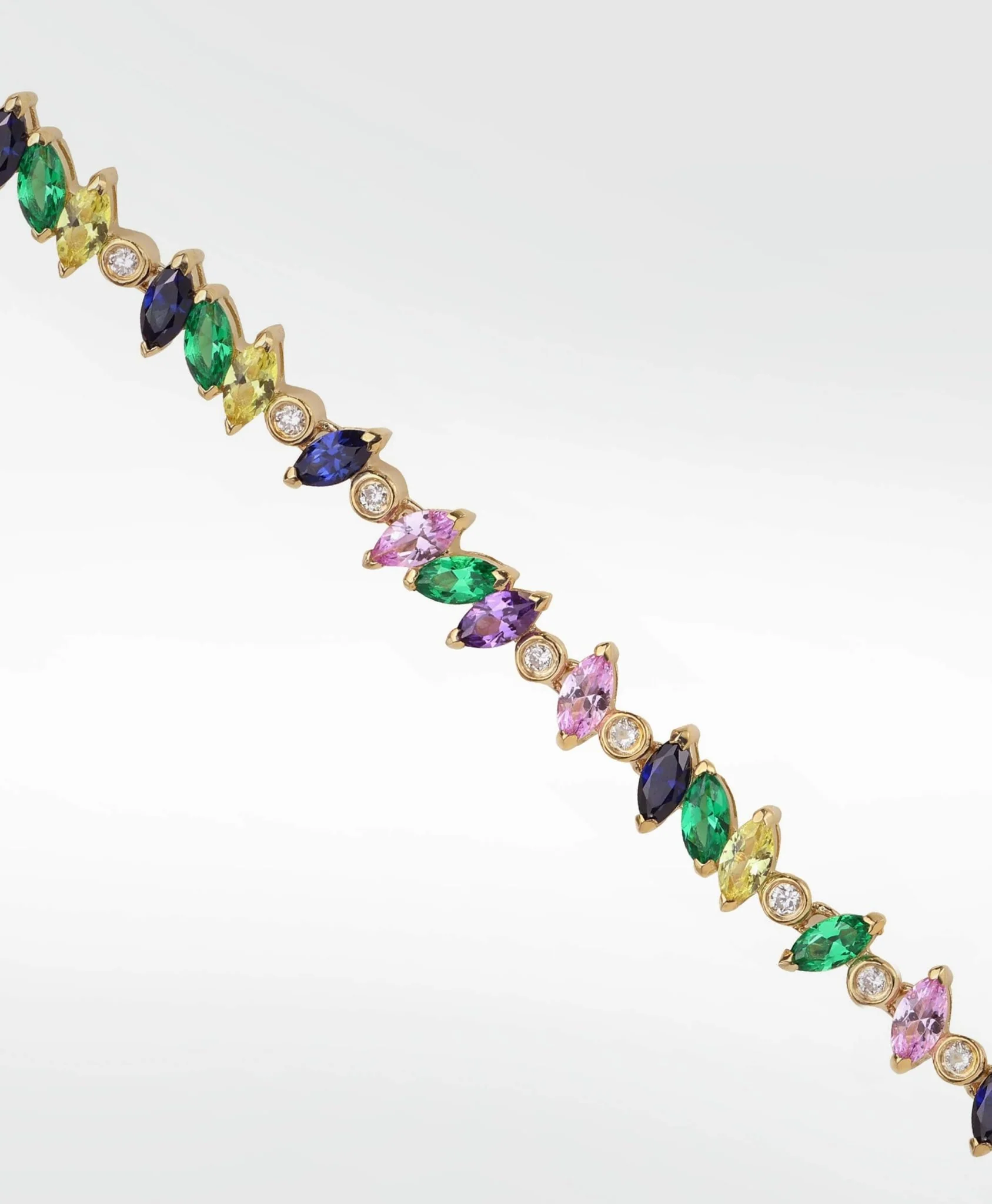 Get swept away with these beautiful; Veto Multi-Coloured Elongated Earrings. With precious stones gently cascading down like petals, these will complement any outfit.