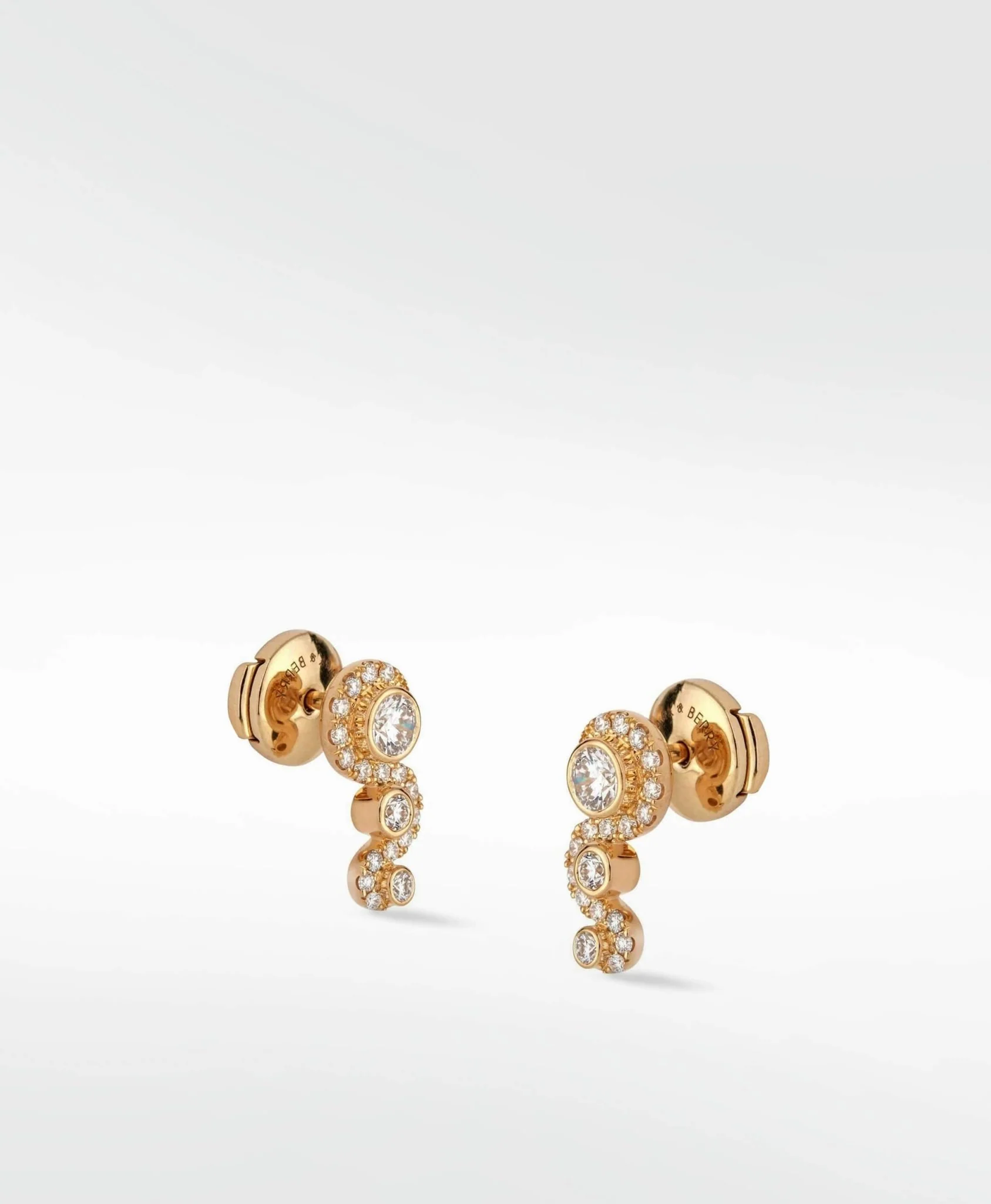 Channel your inner seahorse with our scintillating pair of Wave Diamond Stud Earrings. Allow the cluster of white diamonds to undulate around three graduated diamond center stones, beautifully set in 18K gold. Yearning for a modern touch? Wear the ocean-inspired earrings up the lobes as ear crawlers or classically down to gently frame the face.